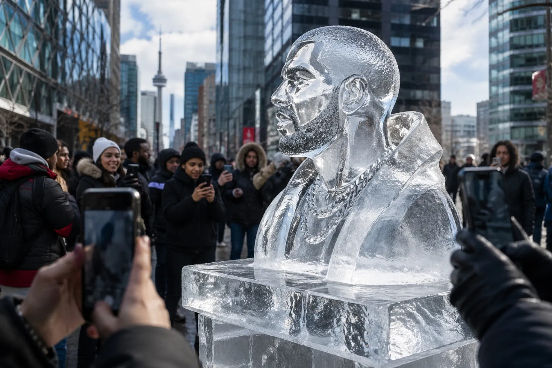 Escultura de hielo Drake activa marketing viral en Toronto